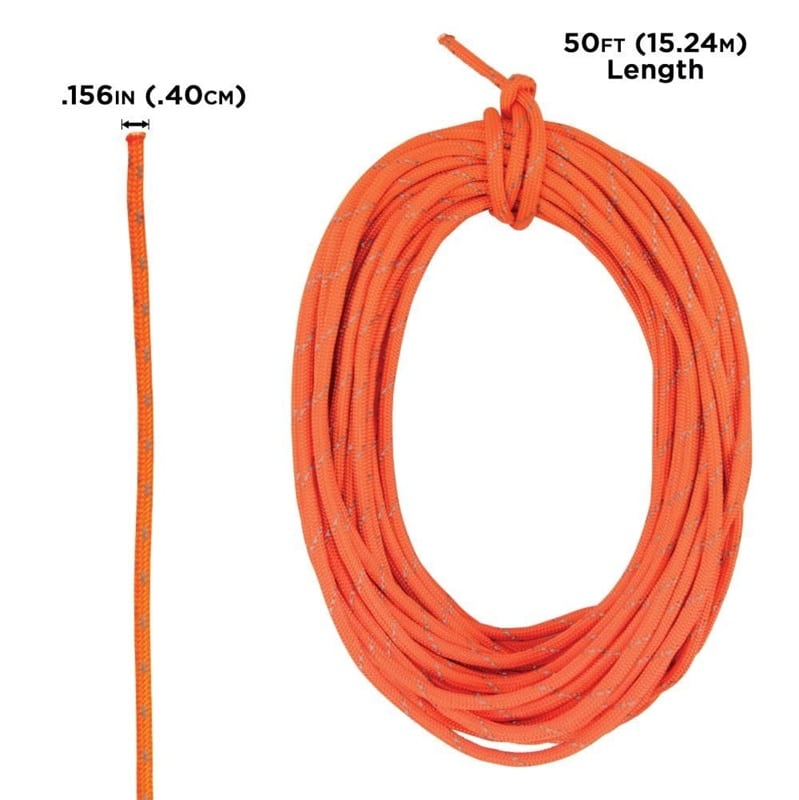 DIMENSIONS : Le cordon réfléchissant pour drapeaux mesure 50 pieds de longueur totale, ce qui permet de disposer de tout le matériel nécessaire sur les sentiers.SKU 470